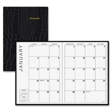 Plan your month with this sleek crocodile-like, soft-covered planner. Dated planning pages offer rich gilt edges and range 13 months from January to January. Two-page-per-month spreads include unruled daily blocks, Sunday-through-Saturday scheduling, a notes area for general reminders, holidays, and past and future months reference. Staple-bound monthly planner also features a stapled binding.