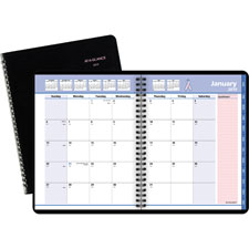 QuickNotes Special Edition Appointment Book allows you to support breast cancer research with your planning needs. A portion of the proceeds is donated to support breast cancer research. The pink ribbon symbol beside the calendar reference at the top helps spread awareness. Dated planning pages range 12 months from January to December. Tabbed, two-page-per-month spreads offer unruled daily blocks, a special pink QuickNotes column for note-taking, Sunday-to-Saturday scheduling, numbered weeks, count of days/days remaining, and two past and six future months reference. Wirebound appointment book also includes a storage pocket and simulated leather cover.