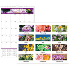 Floral Wall Calendar brightens any room or office with beautiful floral images on each page. Versatile calendar features a different full-color floral image and quote each month. Dated planning pages range 12 months from January to December. Unruled daily blocks (3" x 2") offer plenty of writing space for notes and appointments. One-page-per-month format also includes Sunday-through-Saturday scheduling, count of days, days remaining, holidays, and full-year calendar reference on each page. Calendar is printed on high-quality opaque paper. Design also offers a white wire binding with an eyelet for easy hanging and full chipboard back for sturdy support.