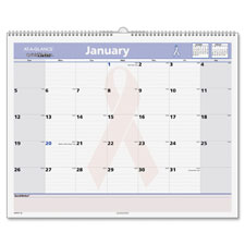 Monthly wall calendar supports breast cancer research. A donation will made to the City of Hope for breast cancer research, treatment and education from the proceeds of the sale of this special edition calendar. Dated planning pages range 12 months from January to December. One-page-per-month format offers ruled daily blocks (2" x 1-11/16"), Sunday-through-Saturday scheduling, past and future months reference, count of days/days remaining, and a special pink QuickNotes writing area on bottom for extra notes, long-range planning and to-dos. Federal holidays are highlighted in blue. Weekends are shaded. Wall calendar is wirebound with an eyelet for hanging.