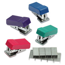 Mini Pocket Stapler is sized to easily slip into a briefcase or purse. Takes regular office staples. Assorted colors include black, putty, burgundy, white, pink, blue, green and purple.