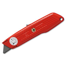 Spring-loaded blade retracts into utility knife automatically when pressure on slide button is released. Round point blade reduces risk of accidental cuts and damage to the interior contents of cartons. Round point blade sets to two different cutting depths on the self-retracting utility knife.