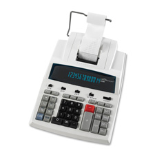 14-digit commercial calculator prints 4.1 lines per second in two colors. Functions include tax calculation, cost/sell/margin calculation, item count and grand total. Calculator features a large fluorescent display, clock/calendar display, and AC operation.