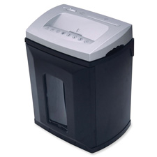 Personal cross-cut shredder is perfect for the office or home. Shredder shreds documents to 2/13" x 1-3/10" (4mm x 33mm) confetti pieces in one pass and shreds up to 10 sheets per pass and 4-11/12' per minute. Throat width is 8-1/2". Durable steel cutters handle CDs and DVDs and shred them into confetti. Auto-reverse function with slide switch activates when jammed to clear jams. LED indicators show power on, door open, overheat and overload. Shredder is also equipped with a safety switch and thermal switch to prevent overheating. Waste bin holds 4-1/4 gallon (16-1/10 liter).