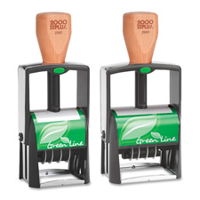 Eco-friendly, metal dater generates up to 5,000 impressions per pad before re-inking with Cosco 2000 Plus refill inks. Dater contains a high percentage of recycled plastic content, uses environmentally responsible water-based inks and is packaged with material made of recycled, unbleached paper fiber. Built-in, Microban antimicrobial protection inhibits growth of microbes such as stain-causing and odor-causing bacteria. Design also includes a durable metal-reinforced frame, nonslip rubber feet, accuracy guide, easy-view index window and Band Shield Technology for simple date changes without ink transferring to fingers. Cartridge-style ink pad is easy to change.