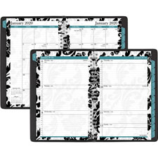 DRN 793201A Weekly/Monthly Planner, 12 Month, 5"x8", Black/White