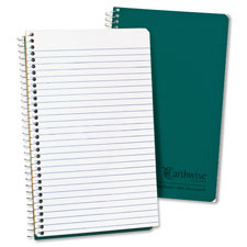 Wirebound notebook is made from a high percentage of recycled material. Notebook contains 80 sheets of legal/narrow-ruled paper.