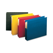 Hanging file pockets feature enclosed sides to keep materials from slipping out. Sturdy gussets expand to 3-1/2". Coated rods suspend folders from file drawers.