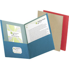 EarthWise recycled twin-pocket portfolios are made with a high percentage of recycled material. Twin pockets hold letter-size documents. The left side pocket offers a business card holder. Pockets resist tearing.