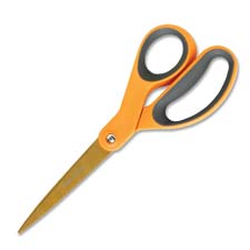 Contoured scissors feature cushioned, ergonomic handles to improve control and reduce fatigue for right-handed or left-handed use. Softgrip, straight handles are straight. Blades are titanium-coated and three times harder than steel for durability and cutting accuracy. Scissors are engineered to cut cloth and multiple layers.