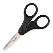 5" scissors feature double-thumb handles made of a high percentage of recycled plastic. Scissors are designed for everyday use and tasks like cutting paper or opening boxes. Stainless steel blades provide smooth cutting action. Lightweight design gives you cutting control.