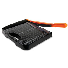 Bypass trimmer features self-sharpening blades so no replacement blades are needed. Blade cuts up to 10 sheets of paper at a time. Cutting arm lock is built-in for safe transporting and storage. Use precision-printed scale and grid on the 12" base for easy alignment. Trimmer also features a paper clamp, smudge guard and antiskid rubber feet for stability. Trimmer base is made from a high percentage of recycled post-consumer resin.