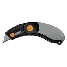 Folding knife features a pivoting design that allows the knife to fold in half for compact storage and transport. Knife locks in place when open for safety. Ergonomic handle includes a compartment for storing up to four additional blades. Simply push a button for blade changing. Folding knife comes with one blade and accepts standard-size utility blades.