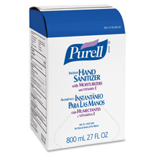 Refill for PURELL Bag-in-the-Box Dispensers kills 99.99 percent of germs that may cause illness. Hand sanitizer works in as little as 15 seconds. No water or towels needed. Specially formulated moisturizers leave hands feeling soft and refreshed. Refill is designed for use in PURELL 800 ml. Bag-in-box Dispensers.