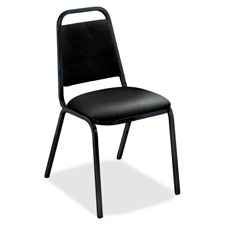 Armless, upholstered stack chairs offer a 1-1/2" thick padded foam seat and a chrome-plated, tubular steel frame. Fabric is 100 percent Olefin. Design includes a polymer shell, 13/16" tubular steel frame, and vinyl seat and back. Stack chairs can stack up to eight high. Chairs are certified by SCS to be in compliance with specific indoor air quality emission requirements and meet or exceed applicable ANSI/BIFMA standards.