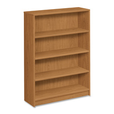 Laminate bookcase features square-edge profile and hardboard back panel. All surfaces (except outside of back) are finished in abrasion-resistant, thermal-fused laminate over solid-core, high-density particleboard. The 3/4" thick shelves are adjustable at 1-1/4" increments. Bookcase is designed for small office/home office applications. Cam-lock fasteners and wood dowels ensure pieces go together easily and precisely. Bookcase is equipped with four adjustable leveling glides. Meets or exceeds ANSI/BIFMA and ISTA performance standards.