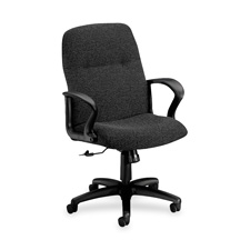 Managerial chair with mid-back offers sleek contemporary styling with pronounced lumbar support and a waterfall seat edge for better leg circulation. Other features include fully upholstered outer back, pneumatic seat-height adjustment, 360-degree swivel, tilt, tilt tension, tilt lock and sloping polyurethane full loop arms for practical comfort. Managerial mid-back chair also features a five-star base with casters for stability and mobility. Available in black frame only. Certified by SCS to be in compliance with specific indoor air quality emission requirements. Meets or exceeds ANSI/BIFMA and ISTA performance standards.