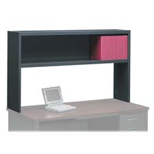 Steel Stack-on Storage Hutch with full clearance and no doors is designed for use with the HON Metro Classic, Initiate Desking and 66000 Series Computer Furniture. Reversible shelves provide a cleaner look. Storage hutch attaches to worksurface through wire management grommets. Includes two dividers and hardware. Meets or exceeds ANSI/BIFMA and ISTA performance standards.