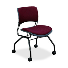Armless mobile guest chair features an upholstered seat and back, and casters for mobility. Unique, passive ergonomic frame has an independent seat and back flex. The back flexes without affecting the seat. The seat flexes without affecting the back. This dynamic seating solution automatically responds to you to enhance comfort and continual support.