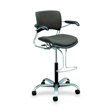 Task stool with arms features an upholstered seat and back, pneumatic seat-height adjustment and 360-degree swivel. Unique, passive ergonomic frame has an independent seat and back flex. This dynamic seating solution automatically responds to you to enhance comfort and continual support.