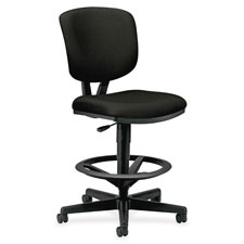 Volt task stool offers comfort, function, and style and adapts to each user with simple comfort controls for added flexibility. Generous proportions and a contoured back deliver optimal comfort. Functions include 360-degree swivel and pneumatic seat-height adjustment from 22-7/8" to 32-3/8". The footring adjusts in height easily with a simple knob for the best position for your legs and feet. The five-star base includes 2-1/2" dual-wheel, hooded casters for easy chair movement. The generously cushioned seat and distinctive V-shaped back are covered in durable fabric. Seat measures 19" wide x 20" deep. The back size is 16-1/2" wide x 20" high. Stool also features a plastic outer back, and frame is available in black only. Stool meets or exceeds applicable ANSI/BIFMA requirements.