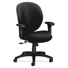 Managerial mid-back chair offers high performance and comfort. Functions include pneumatic seat-height adjustment from 16-1/4" to 20-1/4" high, back-height adjustment, 360-degree swivel, tilt, tilt tension and tilt lock. Arms adjust in height and width. Outer back is upholstered. Executive high-back chair also offers a five-star base with casters for stability and mobility. Weight capacity is 300 lb. Seat size is 19" wide x 20" deep. Usable seat depth is 18-1/4". Back measures 19" wide x 24-1/2" to 24-1/2" high. The distance between the arms is 16-7/8" to 19-3/8". Chair is certified by SCS to be in compliance with specific indoor air quality emission requirements and meets or exceeds applicable ANSI/BIFMA standards. Chair is available in black frame only.