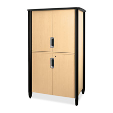As part of the Tercero Conference Room Furnishings, video console accommodates up to 32" diagonal monitors. Upper cabinet features pocket doors for unobstructed viewing. Lower cabinet includes two adjustable and removable interior shelves. Shelves adjust at 2-1/2" increments. Interior storage easily accommodates peripheral equipment. Perforated rear panels allow venting and cable management. Trapezoidal inside dimensions measure 37-1/4" wide at the front, tapering to 33-3/4" wide at the rear. Lower and upper cabinet door opening measures 37-1/4" wide. Video console is equipped with HON "one key" interchangeable core-removable locks. Top features Comfort Thermoform Edge that is made of vacuum-forced member press application of rigid PVC vinyl over medium-density fiberboard. Video console meets or exceeds ANSI/BIFMA and ISTA performance standards.