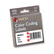 MAC MR4048 Color Coded Labels, Perm Adhesive, 1/4" Diameter, Red 450 EA/BX 2.51/BX OUT OF STOCK