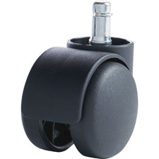 Futura dual-wheel caster is designed exclusively for "Euro-style" chairs. Specially designed 1-1/2" diameter neck fits 1-1/2" diameter chair bases creating the illusion of chair leg and caster being one unit. 2-3/16" diameter dual hard wheel is designed for use on carpeting. Weight rating is 100 lb. per caster.