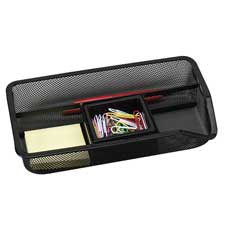 Mesh Drawer Organizer features three compartments for rubber bands, paper clips and pushpins. Longer compartment accommodates pencils, pens and highlighters. Popular mesh metal design adds a contemporary flair to any desktop.