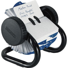 Classic rotary file holds 250 cards to keep your contacts at your fingertips. Exclusive Rolomatic Control holds cards securely in place. Design also features strong tubular metal construction. Included card are made of high-quality card index stock. Rotary file includes insertable A-Z index tabs and 250 cards made of high-quality index stock.