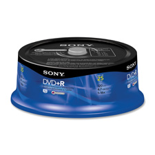 SON 25DPR47RS4 DVD+R, 16X, 4.7GB, Inkjet Printable, 25/PK