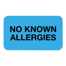 TAB 01510 "No Known Allergies", Label, 1-1/2"x7/8", 250/RL, Blue 250 EA/RL 8.09/RL OUT OF STOCK