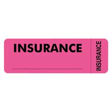 Labels with the message "Insurance" are created for medical office use to convey vital information quickly and easily. The label offers a space to write information related to insurance status.
