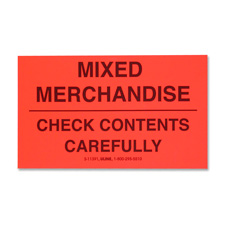 Shipping labels are preprinted with the message, "Mixed Merchandise/Check Contents Carefully," to alert mail handlers. High-quality, peel-and-stick, pressure-sensitive labels on a roll are easily dispensed.