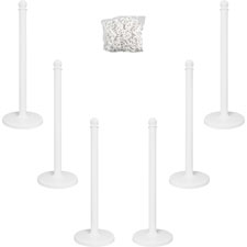 Plastic stanchions and chain are rustproof and ideal for use outdoors to control crowd flow or as an economical indoor option. Chain threads through post head and is easily snap-locked in place with ball top. Chain may be cut to size as needed. Stanchion base is 14" in diameter and may be filled with sand or gravel (not included) for added stability. No tools needed for stanchion assembly. Stanchions and chain are sold separately.