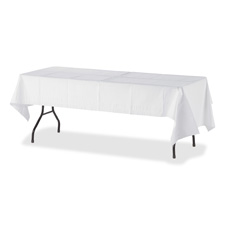 Three-ply, embossed paper tablecovers with liner protect tabletops from spills. Tablecovers are designed to fit 8' tables. Each cover contains a high percentage of recycled material.