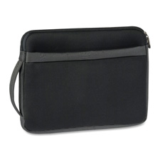Moving through your day gets smoother with this unique Laptop Sleeve. No matter where the day takes you, this sleeve offers formfitting construction and secure laptop coverage for 10.2" (25.9 cm) Netbooks, iPads, 9-7/10" e-Readers. Top zippered, netbook sleeve features a laptop pocket that measures 8" x 11" x 1" (20-3/10 cm x 27-9/10 cm x 2-1/2 cm). Front, zippered compartment holds netbook accessories. Carry handle allows you to easily remove netbook sleeve from your bag or carry as is. Laptop sleeve is made of neoprene with polyester trim. Metallicized trim provides a sophisticated esthetic.