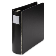 Round-ring binder offers stiff, levant-grain vinyl cover, three DublLock rings and metal hinges. DublLock mechanism keeps contents from spilling out and rings securely closed.