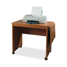 Mobile machine stand is an ideal solution for typewriters, small printers or fax machines, especially where space is limited. Spring-loaded drop-leaf provides work space. Top panel holds up to 187 lb. (85 kg.). Drop leaf holds up to 94-3/5 lb. (43 kg.). Stand will tip if top panel is empty and more than 52-8/9 lb. (24 kg.) is added to the drop leaf. Machine stand rolls easily on four casters (two locking).