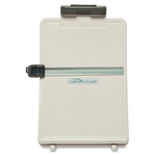 Copyholder features a curved design that reduces glare and maintains same viewing distance from top to bottom of sheet. Angle adjustment allows different reading angles. Adjustable copy clip and line guide hold documents in place. Copyholder accommodates sheets up to 8-3/4" wide x 14-1/2" high. Freestanding design allows easy adjustment of focal distance. Copyholder is lightweight for easy portability and folds flat for storage.