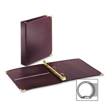Presentation ring binder features brass-plated ring metal and corners, and an inside front pocket. The flexible cover is made of soft, supple, expanded supported vinyl with sewn turned-edge construction and concealed rivets. Binder has a full index allowance in cover width.