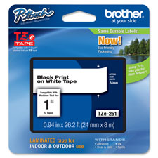 Laminated tape features standard adhesive that is designed for flat surfaces like office paper, file folders and binders. Tape resists water, grease or grime. Use in hot and cold environments as well as outdoors (water-resistant). Tape is best suited for smooth, flat surfaces. Use with Brother PT-330, 350, 520, 530, 540, 550, 580C, 1400, 1500PC, 1600, 1650, 2200, 2210, 2300, 2310, 2400, 2410, 2430PC, 2500PC, 2600, 2610, 2700, 2710, 3600, 9200DX, 9200PC, 9500PC and 9600. Cartridge yields 26.2'. |