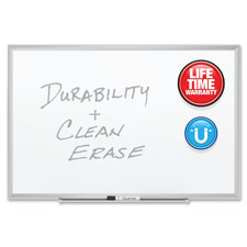 Built to last, porcelain marker board features a magnetic surface that will not stain or ghost and a satin finish anodized frame. Durable porcelain will not scratch or dent with heavy use. Mounting system makes hanging simple and allows horizontal or vertical positioning. Marker tray can be attached with horizontal installation only. Marker board includes four Quartet dry-erase markers.