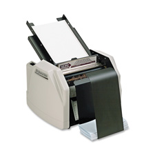 Paper folder is great to use in large mailrooms, offices, churches, schools, businesses and associations. The 1501X automatically feeds and folds a stack of paper up to 8-1/2" x 14" and up to 7,500 sheets per hour. Use in large mailrooms and offices. Easily adjust to create four different folds for 8-1/2" x 11" and 8-1/2" x 14": half, letter, z-fold and double parallel. Fold sheets from 3-1/2" x 5" to 8-3/4" x 14", paper weights from 16 to 28 lb. bond. Fold range adjusts from 1-1/2" to 9-1/4" on the first fold, and 2-3/16" to 6-3/4" on the second fold to allow customized folds. Handy bypass allows you to feed up to three sheets with or without staples.