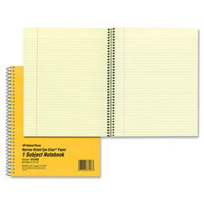 One-subject notebook features Eye Ease green paper, side-opening and no-snag, coilock wire binding. Each sheet is narrow-ruled with no margin. Notebook contains 80 sheets of 16 lb. paper protected by a brown board cover.