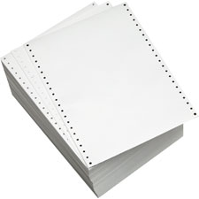 Continuous-form computer paper is designed for high performance. Fine, quality, white bond paper has 1/2" margin perforations and becomes 8-1/2" x 11" once perforations are removed. 20 lb. paper is also perforated between each sheet. One-part, plain white, computer paper is ideal for computerized reports, forms and letters. Paper is packed in a two-piece, telescoping, reusable carton.