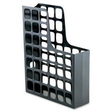 Decofile Magazine File holds magazines upright and keeps contents in view and readily accessible. Design offers a sturdy plastic construction, open-grid sides and large label area. Thumb hole in spine allows you to remove it easily from shelf. Magazine file holds 3" of magazines, manuals and more.