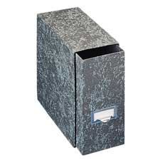 Durable fiberboard sleeve in drawer offers a drawer front design with combination label holder and pull. Document file is ideal for storing folded documents and catalogs. Sleeve and drawer contain 90 percent post-consumer material.