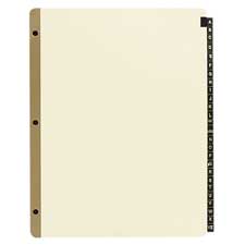 Deluxe indexes feature black leather tabs and gold lettering on both sides for a rich appearance. Preprinted tabs labeled A through Z offer a quick way for detailed filing and retrieval. Three-hole punched indexes have Mylar-reinforced holes for extra long life. Indexes are designed to fit standard three-ring binders.